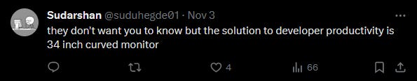A developer’s basic needs can be grouped into hardware and software needs. The things that fulfill these should be so good and seamless that one should be able to take them for granted. This is the only way to move to the next hierarchical satisfaction level.