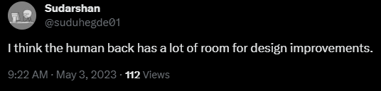 Experts say that the human body was not designed to sit in a chair for >8hrs per day. To those experts I say, wait a few thousand years and the human body would have evolved for just that. Until then, however, we’re stuck with this current homo sapien body setting and will have to make do.