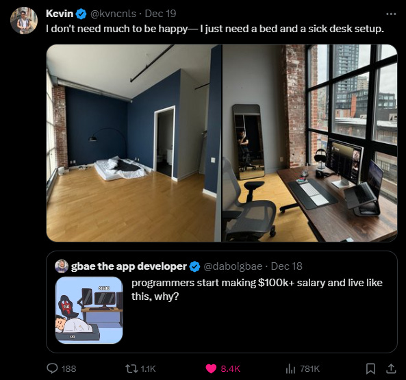 A decent salary should be able to take care of generic physiological needs like food, cloth, shelter and wifi. For the dev life, however, we’ll need to dig a bit more.